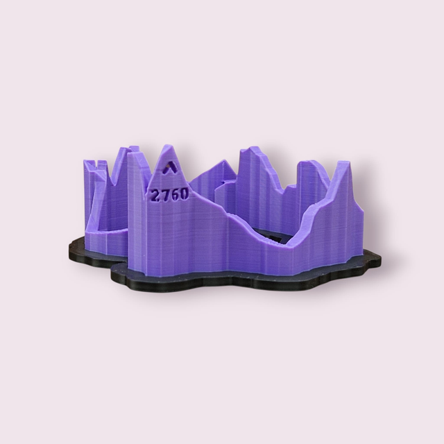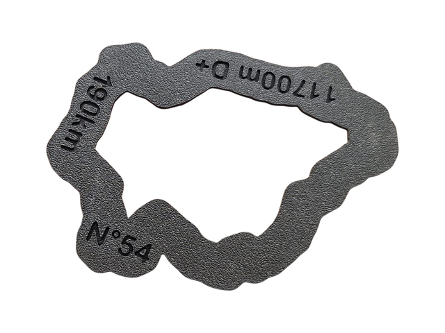 Distance, dénivelé, nom de votre itinéraire… tout est gravé sous la maquette, et le sommet le plus haut indiqué par une encoche directement sur le tracé 3D!